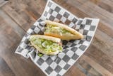 With green peppers, onions, sauce and provolone cheese. Served with chips.